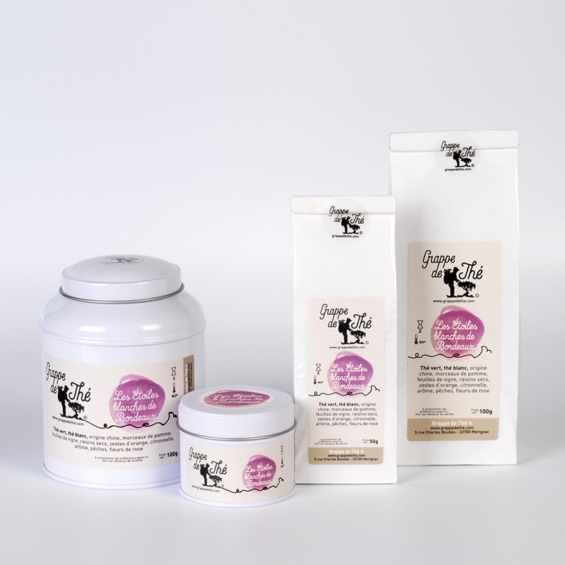Ce thé « Les Étoiles blanches de Bordeaux » de la marque GRAPPE DE THÉ® est une ode à « Bordeaux d´été », ses soirées festives et conviviales.